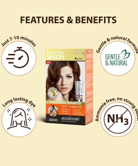 Benefits: Hair colouring as you shampoo hair – Since it can be applied with your hands as you shampoo your hair, the application is very easy and quick.